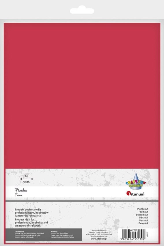Arkusz piankowy Craft-Fun Series pianka dekoracyjna A4 5 szt. kolor: czerwony 5 ark. Titanum (6101)