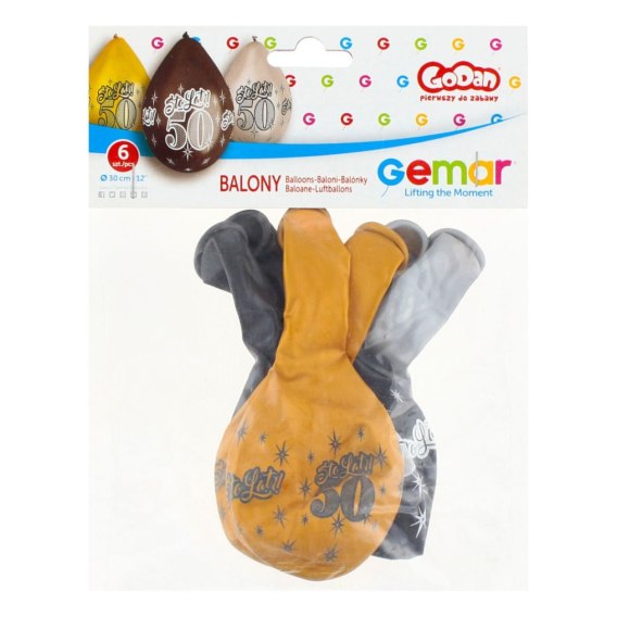 Balon Premium Happy Birthday 50 metaliczny 12`/6 szt