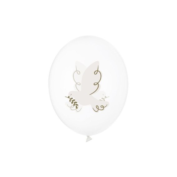 Balony Strong Gołąb, zestaw zawiera 6 balonów w kolorze Crystal Clear z kolorowym dwustronnym nadrukiem, średnica ok. 30 cm.