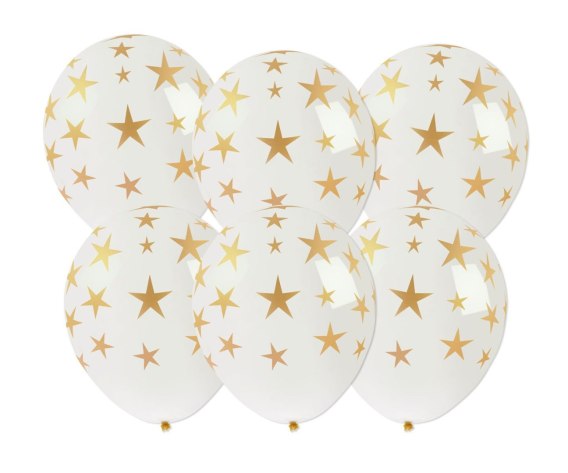 Balon gumowy Golden party ze złotym nadrukiem gwiazdki 6szt. biały 250mm Arpex (KB8190)