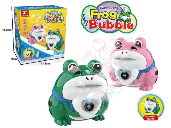 Żaba z bańkami mydlanymi, światło, muzyka; 14x13,5x9cm, Box