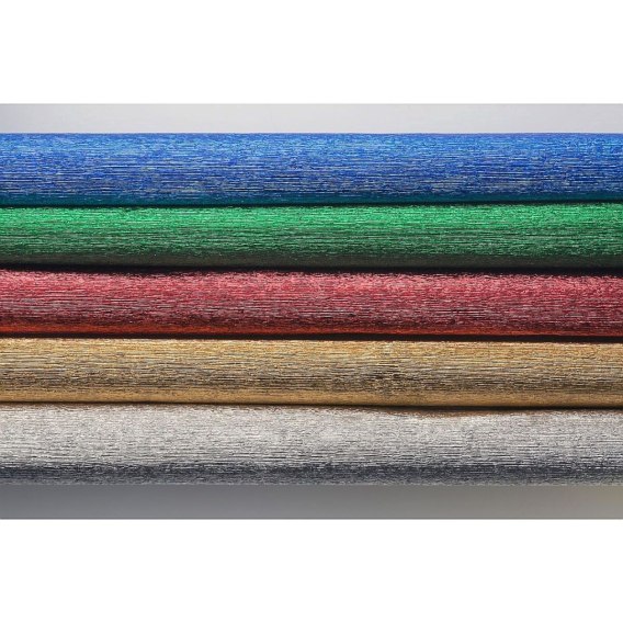 Krótka bibuła w kolorach metalicznych. Doskonale nadaje się do prac ręcznych. Idealna do tworzenia kwiatów, stroików wycinanek, kostiumów. Format 25 x 100 cm. 5 rolek w opakowaniu.