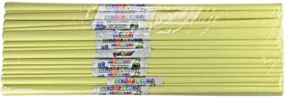 - Bibuła marszczona kolorowa dostępna jest w paczkach po 10 rolek we folii o wymiarach 200 x 50 w kartonie po 100 szt. Stopień krepowania bibuły wynosi do 40%