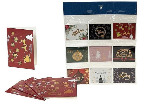 Zestaw 54 karnecików do prezentów świątecznych 12x8,5cm; 46x39cm PVC