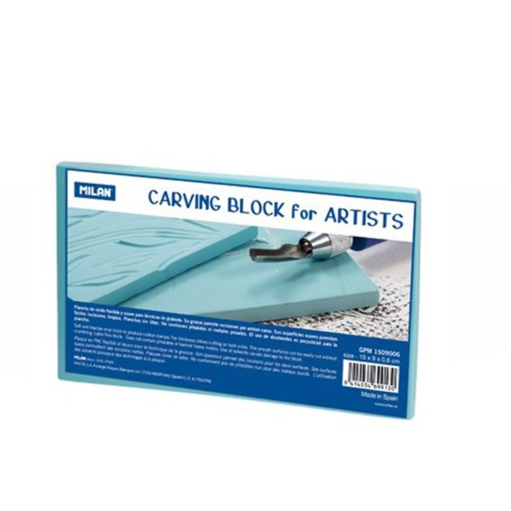 Blok do linorytu (Carving Block for Artists) jest przeznaczony do użytku w dziełach sztuki i rzemiośle. Jest to elastyczny i miękki arkusz winylowy służący do technik grawerowania i druku wypukłego. Ich gładkie powierzchnie pozwalają na łatwe i czyste nacięcia. Używając dłuta precyzyjnie żłobimy kontury, dodając detale o różnych grubościach. Przygotowane wyżłobienia po nałożeniu farby służą do drukowania wzorów, także po obu stronach. Blok łatwo się myje po użyciu i można go ponownie użyć. Blok nie zawiera ftalanów ani metali ciężkich. Użycie rozpuszczalników może uszkodzić blok. Rozmiar bloku: 150 x 90 x 6 mm.