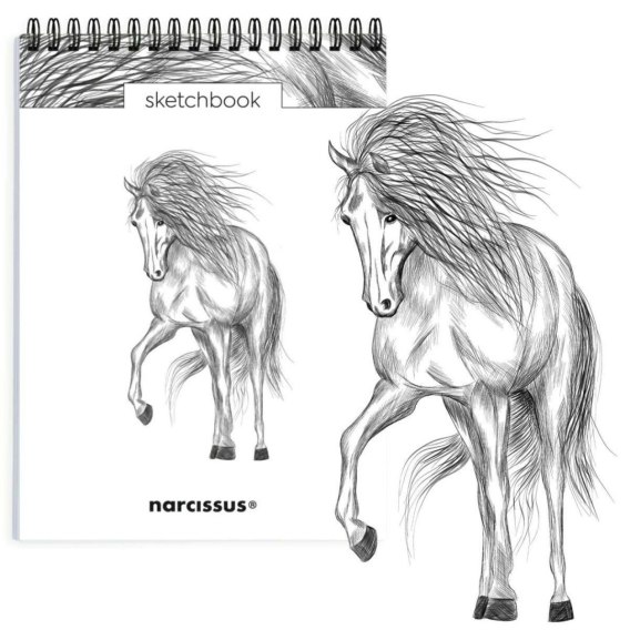 NARCISSUS pionowy szkicownik artystyczny na spirali A5 Koń, 60 kartek z perforacją