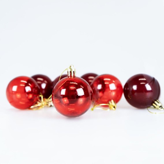 Zestaw bombek transparentnych (8 szt.) - czerwone to klasyczna i efektowna dekoracja świąteczna, która doda blasku każdej choince. Ich przezroczysta powierzchnia w połączeniu z intensywną czerwienią pięknie komponuje się ze światłem lampek choinkowych, tworząc elegancki i ciepły klimat. Dzięki lekkiej konstrukcji bombki są łatwe do zawieszenia i idealnie sprawdzą się zarówno na choince, jak i w stroikach czy świątecznych aranżacjach stołu.