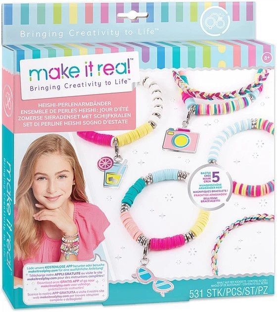 Wykorzystaj zestaw koralików Make it Real, aby stworzyć wyjątkowe ozdoby, które nadadzą Twoim stylizacjom niebanalny charakter. Wciel się w rolę projektantki biżuterii, stwórz niesamowity projekt i przejdź do jego realizacji. Robienie biżuterii to świetna, pobudzająca wyobraźnię kreatywna zabawa, której owocem są niezwykłe ozdoby, stworzone z pasją i zaangażowaniem. Dowiedz się, jak stworzyć pięć wyjątkowych bransoletek z koralikami heishi, korzystając z niezwykłego zestawu do robienia biżuterii, w którym znajdziesz aż 528 elementów i specjalny warsztacik PlayTray. ● FANTASTYCZNY ZESTAW DO TWORZENIA BIŻUTERII: Doskonała zabawa dla dziewczynek i świetna okazja do wykazania się kreatywnością. ● STYLOWA BIŻUTERIA, ŁATWA DO WYKONANIA: W zestawie znajdziesz wszystko, co jest potrzebne do wykonania pięciu modnych bransoletek z koralikami heishi w elektryzujących kolorach. ● WYJĄTKOWE OZDOBY KAŻDEJ STYLIZACJI: Każda z tych ślicznych bransoletek będzie doskonałym uzupełnieniem różnych strojów i stylizacji, zapewniając wiele możliwości mieszania i łączenia rozmaitych wzorów i kolorów. ● POMAGA ROZWIJAĆ PRAKTYCZNE UMIEJĘTNOŚCI: Nauka projektowania i tworzenia własnej biżuterii pomoże dziewczynkom rozwijać zdolności motoryczne, wzrokowe i sensoryczne, a przy tym świetnie się bawić i wyrażać siebie! ● ŚWIETNY POMYSŁ NA PREZENT: Zestaw do robienia biżuterii Make It Real to doskonały prezent dla dziewczynek i nastolatek. Pomaga rozwijać umiejętności, które później pozwolą im odnosić sukcesy zawodowe. ● IDEALNY DLA DZIECI W WIEKU 8+. W zestawie: - 480 koralików heishi - 35 srebrnych koralików - Mulina w 6 kolorach (każdy o dł. 2 m) - 3 zawieszki - 1 duży metalowy pierścień - 1 mały metalowy pierścień - 1 karabińczyk z kółkiem - Elastyczny sznurek (2 m) - PlayTray