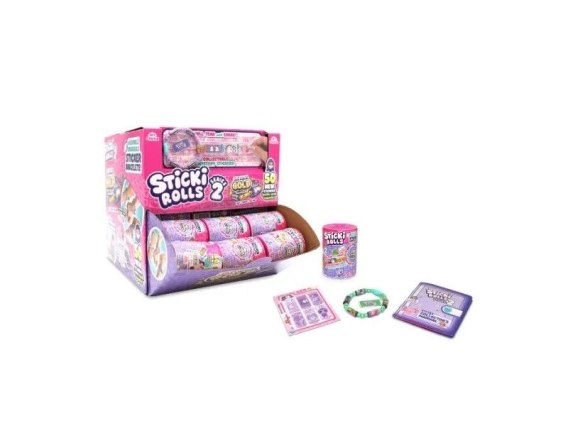 Zestaw startowy: Każda kapsuła Sticki Bands zawiera w pełni złożoną bransoletkę zawierającą pięć rolek Sticki Rolls - każda rolka ma 10 naklejek! W zestawie znajduje się również strona z zadaniami Sticki Book, kompatybilna z Sticki Book (sprzedawana oddzielnie)