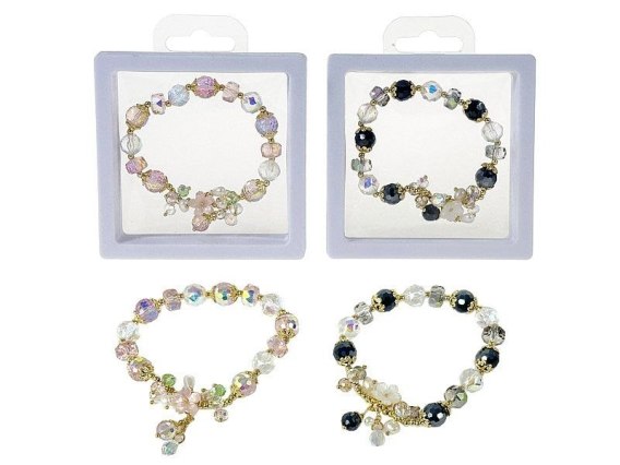 Bransoletka śred.6cm, rozciągliwa, szklane koraliki z metalowymo elementami, w ozdobnym pudełku; 9x9x2cm, W/B