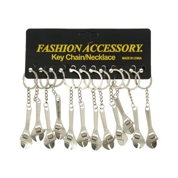 Brelok klucz francuski, metalowy dł.6cm + zawieszka, karta 12szt