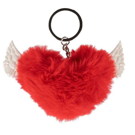 Breloczek z sercem ze skrzydełkami amora. Miękkie, materiałowe serduszko pokryte miłym w dotyku futerkiem. Uroczy gadżet idealny na podarunek na walentynki, a także ozdoba do kluczy, plecaka, torebki. Dostępny w kolorze czerwonym, różowym oraz fioletowym.