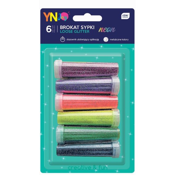 Brokat sypki w tubce w 6 kolorach. Precyzyjny zamykany dozownik umożliwia wygodną aplikację i przechowywanie. Świetnie sprawdzi się podczas twórczych zabaw i zdobienia.
