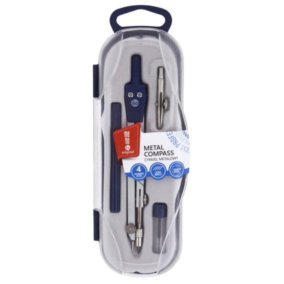 Cyrkiel MemoBe.Zestaw 4-elementowy bazowany na metalowym cyrklu z regulacją kąta nachylenia grafitu. Solidny mechanizm regulacji promienia rysowanych okręgów zapobiega efektowi „elipsy” przy mocniejszym przyciśnięciu cyrkla do papieru. Łatwy w obsłudze system wymiany grafitów. Maksymalna średnica rysowanych okręgów to 36 cm. W zestawie pakiet zapasowych grafitów w plastikowym pojemniczku z zatyczką, końcówka do tuszu, uchwyt grafionu. Idealny do zastosowań szkolnych na lekcjach matematyki, techniki i plastyki.
