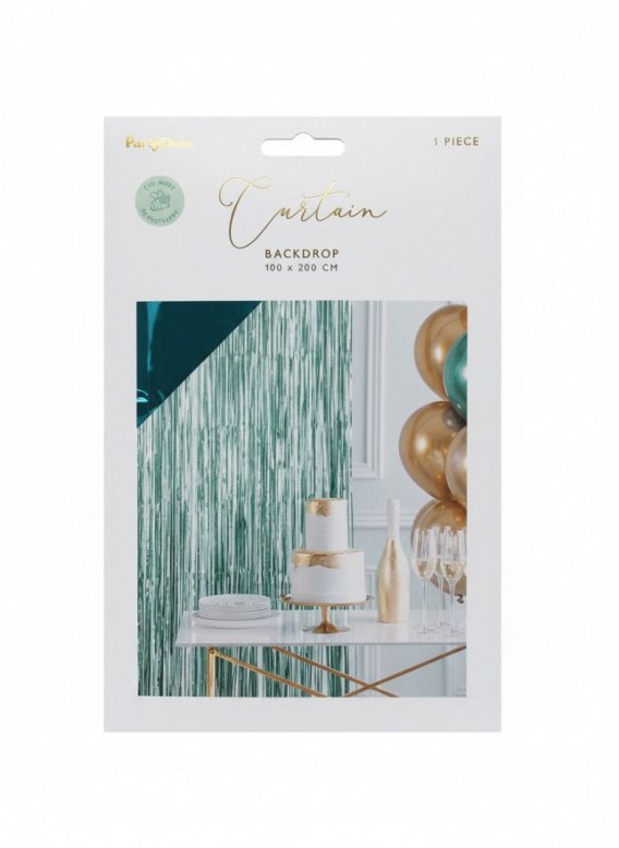 Dekoracja Kurtyna Party, butelkowa zieleń, 100x200cm Partydeco (CRT3S-012B)