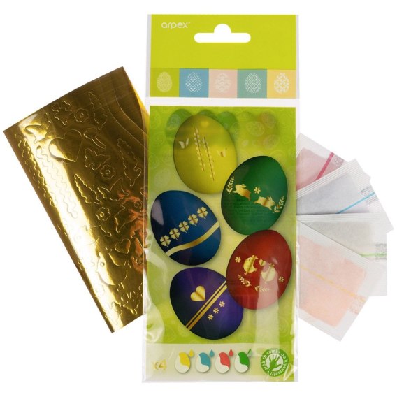 Dekoracja jajek Zestaw do zdobienia pisanek (barwniki 5 szt., arkusz ze złotymi naklejkami) Arpex (SW8991)