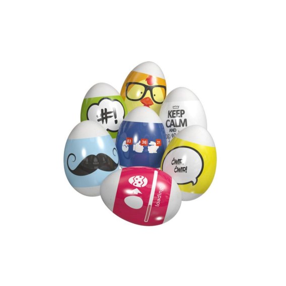 Zestaw owijek, koszulek przeznaczonych do udekorowania jaj Wielkanocnych.
