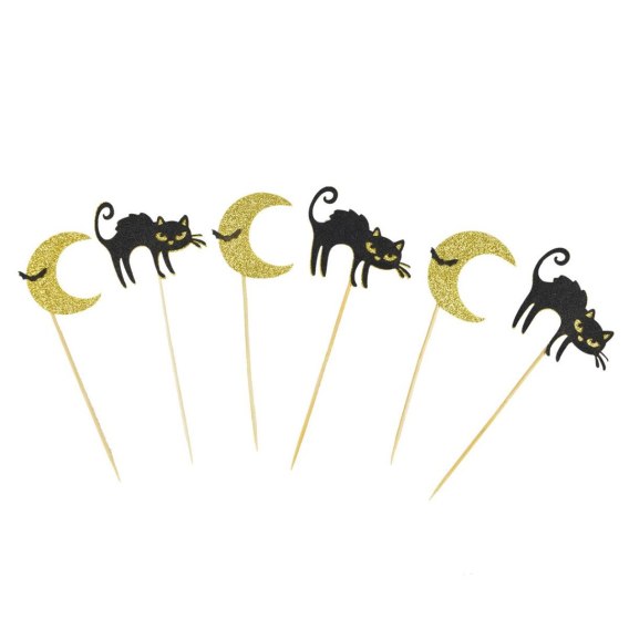 Dekoracja halloweenowych wypieków. Podkreśl wyjątkowy charakter tego dnia przy pomocy nieodłącznych motywów dla tego święta - czarnych kotów i nietoperzy. Całość iskrzy się brokatem.