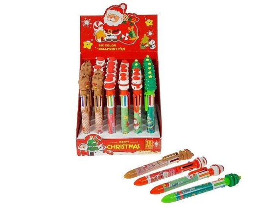 Długopis wielokolorowy z motywem świątecznym, display 48szt; Box
