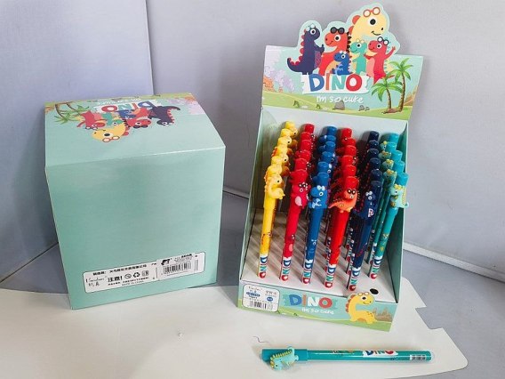 Długopis żelowy, ścieralny z dinozaurem, display 36szt; 17x15x13cm, Box