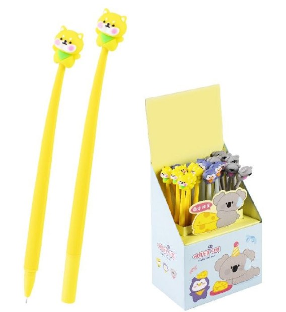 - z wymiennym wkładem - elastyczny - gładkie pisanie - wykonany z miękkiego, przyjemnego w dotyku silikonu - bezpieczna, wentylowana zatyczka - wygodny display z kilkoma wzorami długopisów - opakowanie: display 24 szt.