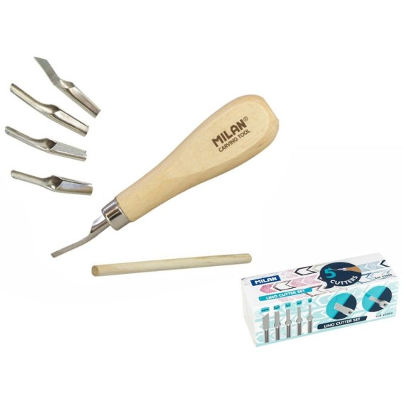 Zestaw dłut: drewniany uchwyt z wymiennymi 5 ostrzami w różnych kształtach do linorytu. Niezbędnik dla rozpoczynających zabawę, jak i profesjonalistów w rzeźbieniu wzorów w linoleum, blokach gumowych i winylowych. Całość zamknięta w pudełku, które idealnie sprawdzi się do przechowywania zestawu. Zajmuje bardzo mało miejsca, co pozwala zabrać zestaw wszędzie ze sobą.