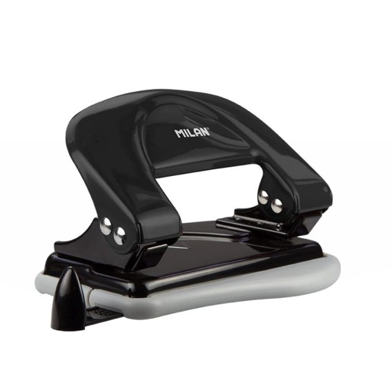 Dziurkacz metalowy czarny z plastikową, regulowaną prowadnicą z oznaczeniami różnych formatów papieru. Miękka plastikowa podstawa nie rysujuje podłoża. Dziurkuje do 15 arkuszy. Rozmiar dziurkacza: 17,5 x 6,5 x 5 cm. Waga: 0,19 kg.