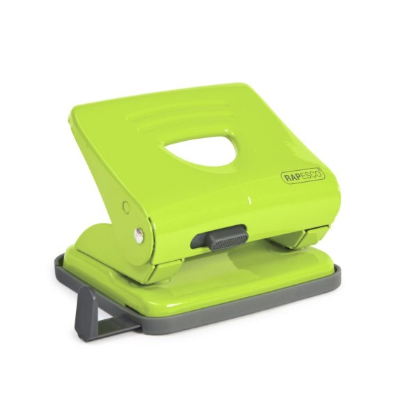 Metalowy Dziurkacz Dwuotworowy 825. Wygodny, elegancki dziurkacz posiada metalowe części pracujące, precyzyjne utwardzone ostrza, ogranicznik formatu i blokadę zamykającą, okienko do personalizacji, metalową bazę oraz gumowany pojemnik na „confetti". Okienko do personalizacji umożliwia szybką identyfikację. Dziurkuje na raz do 25 kartek, wystarczający dla większości zastosowań. 15 lat gwarancji.