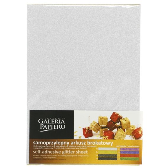 Arkusz samoprzylepny z brokatowym wykończeniem, kolor brokatowy mix, opakowanie 10 arkuszy A4, do zdobienia zaproszeń, kartek okolicznościowych, pudełek, tworzenia dekoracji, nie przeznaczony do druku,