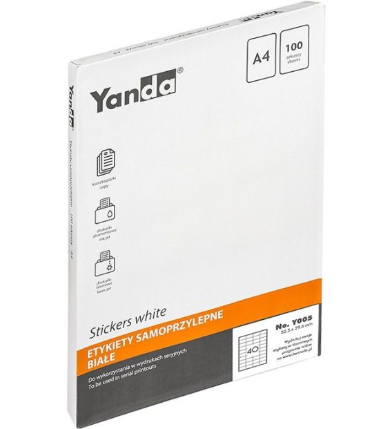 Etykieta samoprzylepna Y005 A4 biała [mm:] 52,5x29,6 Yanda (150-1482)