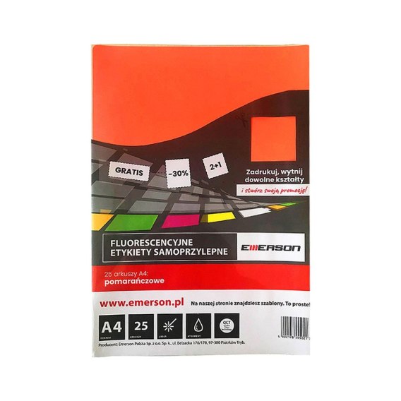 Etykieta samoprzylepna etykiety A4 pomarańczowy Emerson (ETOKPOM001x025x010)