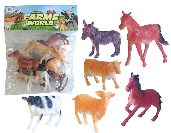 Zestaw 6 zwierząt gospodarskich; 18x18x4cm, PVC