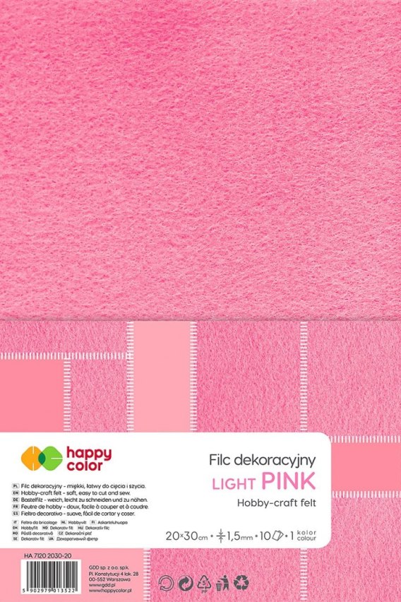 Filc kolor: różowy jasny 5 ark. [mm:] 200x300 Happy Color (HA 7150 2030-20)