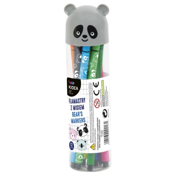 Flamastry w uroczym pojemniczku z misiem to praktyczny zestaw, który z pewnością przyda się w szkole. Wewnątrz opakowania znajdziesz flamastry w aż różnych 12 kolorach. Precyzyjna końcówka flamastrów ułatwi Ci narysowanie jak i podkreślanie ważnych notatek czy tematów lekcji. Co więcej, pojemnik, w którym znajdują się flamastry pozwoli Ci utrzymać porządek na stanowisku pracy i będzie uroczą dekoracją Twojego biurka! Opakowanie jest bardzo poręczne i nie zajmuje dużo miejsca, więc będziesz mógł je zabrać ze sobą do szkoły lub w podróż.