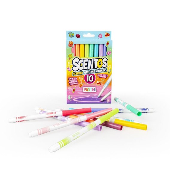 Zestaw, z którym pisanie i rysowanie stanie się pachnącą przygodą! Tworzy go dziesięć flamastrów w pięknych, pastelowych kolorach, które słodko pachną. Każdemu mazaczkowi odpowiada inny zapach, nawiązujący do deserów lub słodyczy w tym samym kolorze. Produkt przeznaczony jest dla dzieci od 3 roku życia. Cechy produktu: - w zestawie 10 flamastrów w różnych, pastelowych kolorach; - każdy z flamastrów pachnie inaczej; - flamastry umożliwiają rysowanie cienkiej lub grubej kreski; - wiek: 3+