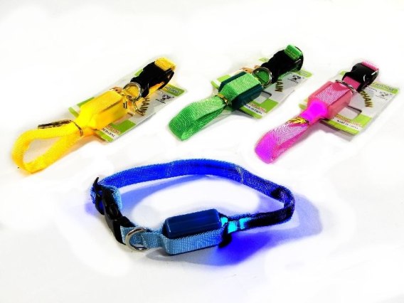 Obroża dla psa ze światłem, 3 tryby świecenia, baterie dołączone 2xCR2032; obwód 35cm, szer.2,5cm