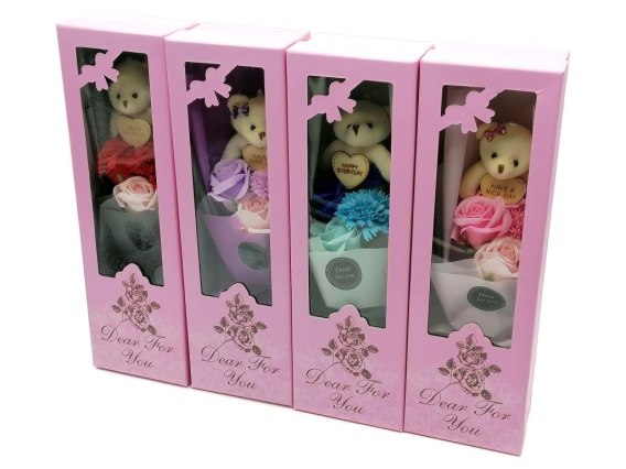 MIŚ Z KWIATKAMI W PUDEŁKU ; MIX KOLORÓW; wym. Op. 37x11,5x8cm ; WALENTYNKA ; BOX ; 80 ;