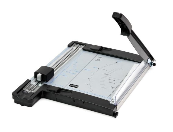 Gilotyna z trymerem Wallner GT 320, Gilotyna i trymer w jednym urządzeniu, Możliwość łączenia i rozłączania urządzeń, Gilotyna: ręczny docisk papieru, osłona zabezpieczająca, jednorazowe cięcie do 10 kartek 80g, długość cięcia: 320 mm, Trymer: format A4, listwa dociskowa, 3 linie cięcia: prosta (do 10 kartek 80g), falista i perforowana (do 3 kartek 80g), Gwarancja: 2 lata,