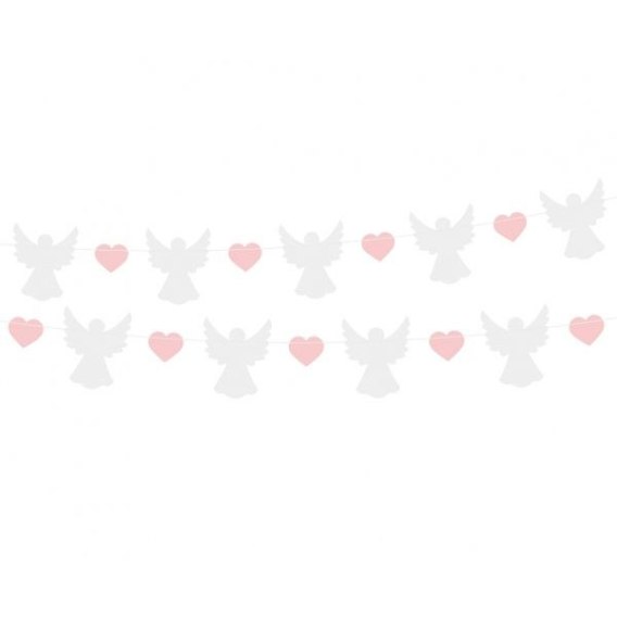 Girlanda papierowa Aniołki (10x12 cm), różowe serduszka (5x4 cm), 150 cm
