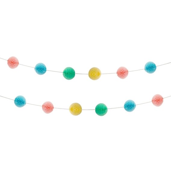 Różnokolorowa girlanda kuleczki z kolekcji premium Beauty&Charm. Ta śliczna girlanda urodzinowa pasuje również na każdy inny rodzaj przyjęcia: wieczór panieński, garden party, baby shower oraz wiele innych. Dzięki swojej praktycznej długości 200 cm z powodzeniem będzie pasować do niemal każdego wnętrza, a w przypadku chęci stworzenia dłuższej dekoracji wystarczy połączyć kilka girland ze sobą.