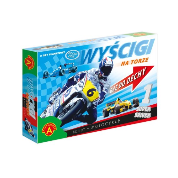 Wyścigi motocykli i bolidów to dwie emocjonujące gry planszowe. Wygrywa w nich ten, kto pierwszy postawi swój pionek na ostatnim polu trasy. Jednak aby to zrobić gracze muszą pokonać wiele przeszkód. Emocjonująca rozgrywka zapewnia doskonałą zabawę całej rodzinie. Gra świetnie uczy dzieci podstawowych zasad dominujących w planszówkach.