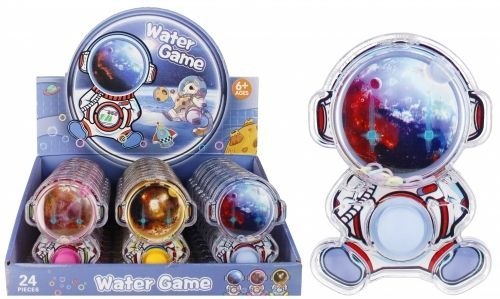 Zalety produktu: zadba o rozwój ruchowo-myślowy, występuje w trzech wzorach i kolorach. Gra zręcznościowa polegająca na umieszczeniu wszystkich kolorowych obręczy na dwóch słupkach, posługując się jedynie jednym przyciskiem, który wprawia obręcze w ruch dyktowany przez znajdującą się w środku wodę. Zawartość zestawu: gra wodna Astronauta. Wymiary/waga/baterie: wymiary produktu dł. x wys. x gł. cm : 8x11x3, wymiary opakowania display dł. x wys. x gł. cm : 27x11x20, waga produktu bez opakowania kg : 0,09 kg, waga produktu w opakowaniu display kg : 2,23 kg, nie wymaga zasilania bateriami. Zabawka przeznaczona dla dzieci w wieku: 6 . Pakowane w display po 24 szt. W kartonie zbiorczym po 144 szt.