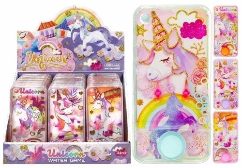 Zalety produktu: zadba o rozwój ruchowo-myślowy, występuje w trzech wzorach. Gra zręcznościowa polegająca na umieszczeniu wszystkich kolorowych obręczy na dwóch słupkach, posługując się jedynie jednym przyciskiem, który wprawia obręcze w ruch dyktowany przez znajdującą się w środku wodę. Zawartość zestawu: gra wodna Jednorożec. Wymiary/waga/baterie: wymiary produktu (dł. x wys. x gł.) [cm]: 7x14x2, wymiary opakowania display A 24 (dł. x wys. x gł.) [cm]: 24x15x19, waga produktu bez opakowania [kg]: 0,12 kg, waga produktu w opakowaniu display [kg]:2,86 kg, nie wymaga zasilania bateriami. Zabawka przeznaczona dla dzieci w wieku: 3+. Pakowane w display po 24 szt. W kartonie zbiorczym po 72/216szt.