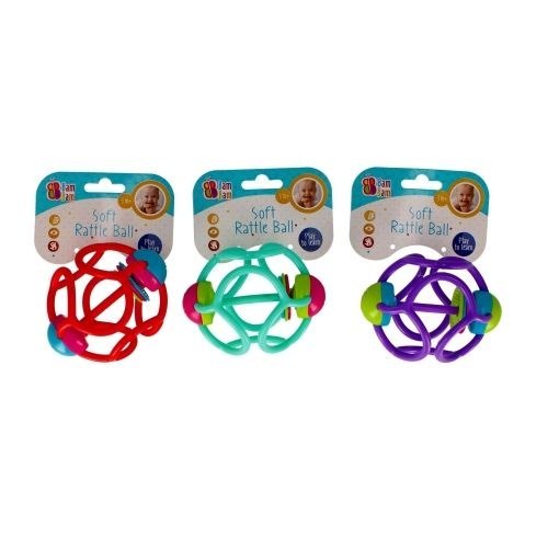 Zalety produktu: GUMOWA KULA z grzechotkami dla dziecka od 3 miesiąca, to nie tylko doskonała zabawka do rzucania, turlania i toczenia ale także do zabawy podczas kąpieli. Wewnątrz kolorowego okręgu utkanego z gumowych paseczków, znajduje się grzechotka która podczas zabawy wydaje odgłosy. Zabawka doskonale wpływa na rozwój zdolności motorycznych i manualnych. Wymiary/waga/baterie: wymiary produktu śr. cm : 10 cm, wymiary opakowania dł. x wys. x gł. cm : 12x19x12, waga produktu bez opakowania kg : 0,06 kg, waga produktu w opakowaniu kg : 0,07 kg, Nie wymaga zasilania bateriami. Zabawka przeznaczona dla dzieci w wieku: 3m . Pakowana na blistrze.