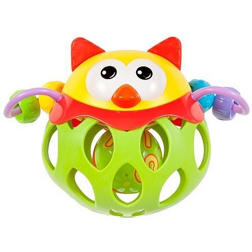 MIĘKKA, GUMOWANA KULA z GRZECHOTKĄ SÓWKA BAM BAM to idealna zabawka edukacyjna dla dziecka od 6 miesiąca życia. Wykonane z miękkiej i plastycznej gumy, z regularnymi otworami, w pełni pozwalają małym rączkom na chwytanie, ugniatanie, turlanie oraz potrząsanie, wydając przy tym efekty dźwiękowe, dzięki umieszczonej we wnętrzu grzechotce. Faktura i właściwości materiału, z jakiego została wykonana kula, pozwala im zawsze powracać do pierwotnego kształtu. Boczne uchwyty z kolorowymi obręczami są dodatkowym elementem, który rozwija zdolności manualne oraz urozmaica zabawę. Zabawka wpływa na rozwój wielu zmysłów, między innymi słuchu, wzroku oraz zdolności motorycznych. Wymiary/waga/baterie: wymiary produktu dł. x wys. x gł cm : 15x11x8, wymiary opakowania dł. x wys. x gł. cm : 0,12 kg, waga produktu w opakowaniu kg : 0,23 kg, nie wymaga zasilania bateriami. Zabawka przeznaczona dla dzieci w wieku: 6m . Pakowana w kartonik z otwartym okienkiem.