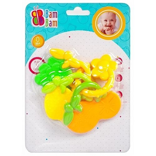 Zalety produktu: Grzechotka Owoce BAM BAM przeznaczona dla niemowląt od 3 miesiąca życia. W intensywnej kolorystyce, o zróżnicowanej fakturze materiałów jak i różnorodnej formie, posiada elementy interaktywne zachęcające malucha do zabawy, a jednocześnie stymulujące rozwój jego zmysłów wzroku, słuchu oraz zdolności motorycznych. Liczne uchwyty gwarantują bezproblemowe utrzymanie grzechotki w małych rączkach. Wymiary/waga/baterie: wymiary produktu dł. x wys. x gł. cm : 12x13x5, wymiary opakowania dł. x wys. x gł. cm : 15x21x5, waga produktu bez opakowania kg : 0,06 kg, waga produktu w opakowaniu kg : 0,08 kg, nie wymaga zasilania bateriami. Zabawka przeznaczona dla dzieci w wieku: 0m . Pakowana na blistrze.