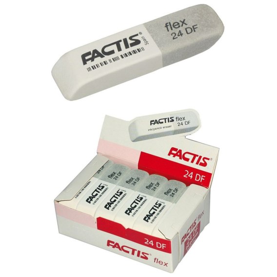 Dwustronna duża guma z kauczuku naturalnego, do ołówków i tuszów, uniwersalna, wymiary: 74x20x10 mm, produkcja : Factis, Hiszpania.