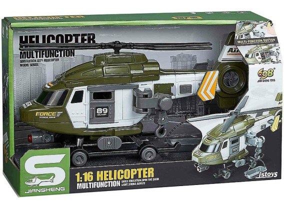 Helikopter wojskowy, światło, dźwięk, napęd na koło zam; 31,5x18,5x12,5cm, W/B