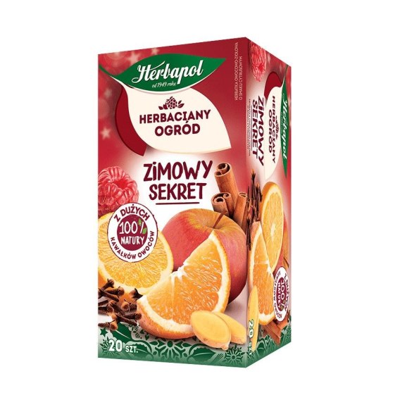 Zimowy sekret to herbatka, której mocno owocowy smak pochodzi wyłącznie z naturalnych składników. Przez przezroczystą saszetkę możesz zobaczyć duże kawałki owoców, dzięki którym napój jest wyjątkowo smaczny i aromatyczny. Sięgając po Herbaciany Ogród wybierasz to, co najlepsze z natury. Herbatki z linii Herbaciany Ogród to herbatki owocowe o doskonałym smaku. Wyselekcjonowane i starannie zebrane owoce poddawane są dokładnej kontroli, a następnie starannie pakowane tak, aby chronić całe dobrodziejstwo natury. To 100% naturalnych składników.