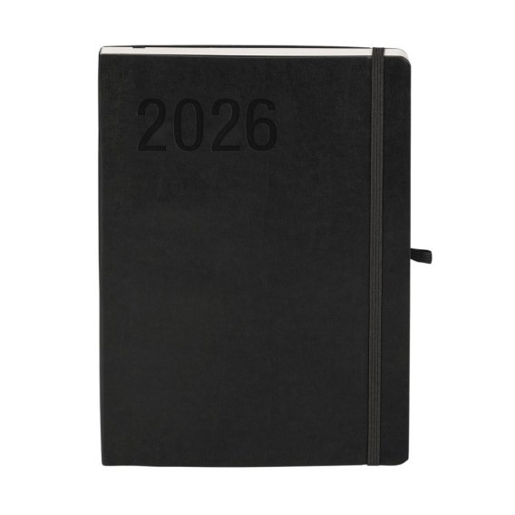 Format B5, oprawa: miękka, materiał: ekskluzywna skóra ekologiczna, papier: 80g, kolor papieru: ecru, pionowa gumka zamykająca, gumka na długopis, zaokrąglone rogi, wyklejka z ozdobnego czarnego papieru, koperta na luźne karteczki, wstążka w kolorze okładki, dodatkowe strony: skrócony kalendarz 2023-2025, plan roku 2026, ważne wydarzenia, notatnik oraz skorowidz adresowy, 176 strony, 247x172 mm